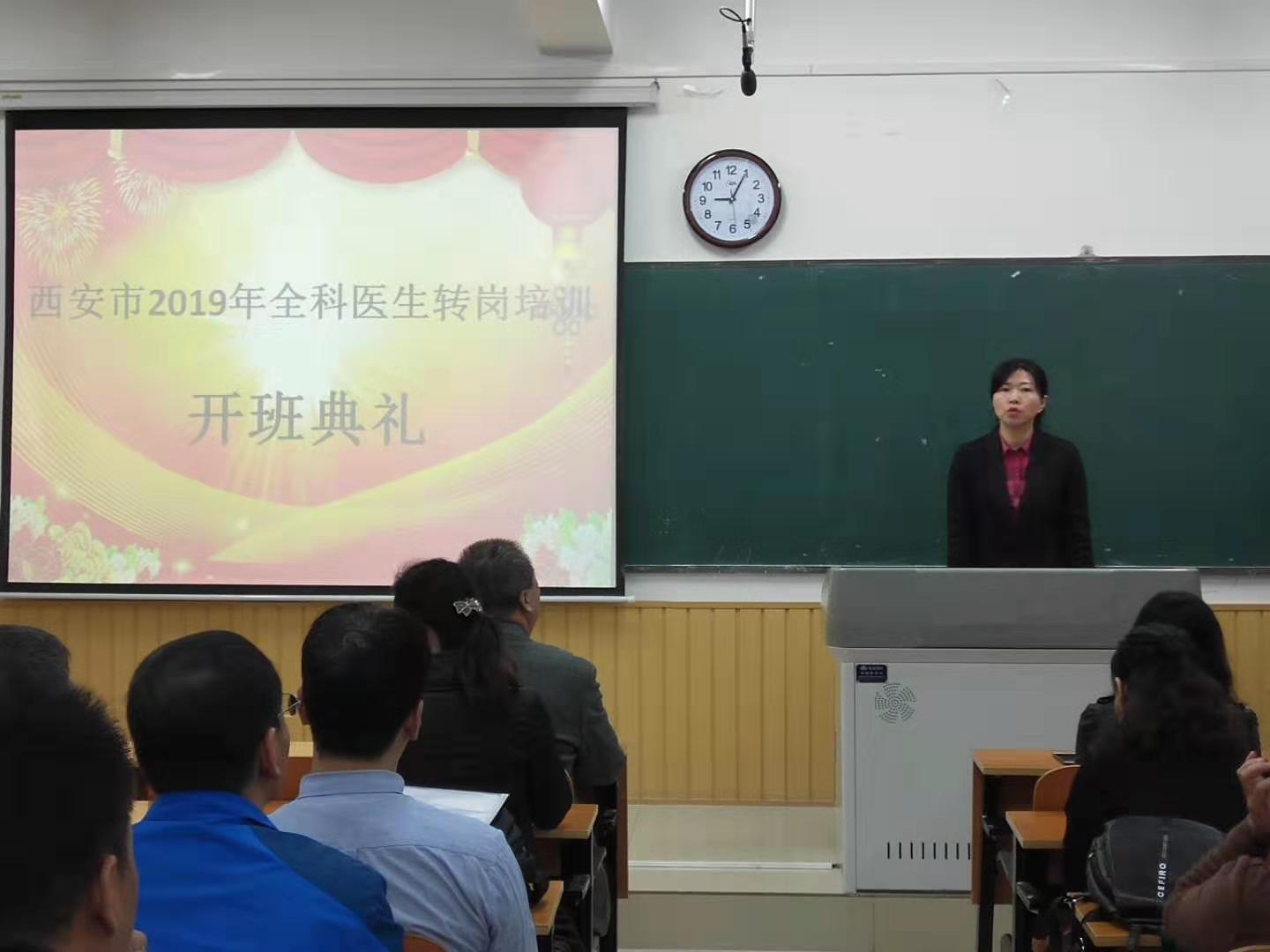 2019年10月9日上午9:00整,西安市2019年度全科医生转岗培训开班典礼在公司高新校区举行,西安市卫健委科教处副处长程婕、beat365亚洲体育官方网站副经理焦东平参加典礼,beat365亚洲体育官方网站员工科科长张瑾主持开班仪式。