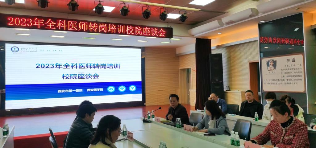 为扎实推进学习贯彻习近平新时代中国特色社会主义思想主题教育走深走实,全面了解陕西省全科医生转岗培训学员的临床实践情况,协助学员及时解决实践过程中遇到的问题,进一步提高临床实践培训质量。3月3日下午,beat365亚洲体育官方网站经理崔军海带领培训部工作人员前往西安市第一医院参加陕西省全科医生转岗培训校院座谈会。西安市第一医院总会计师蔡秀莲、科教科主任吴松迪、班主任及培训学员共计33人参加了座谈会。