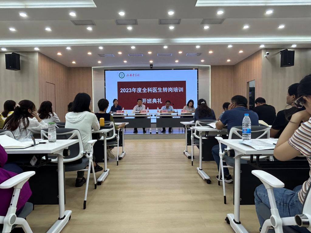 为贯彻落实国家、陕西省委省政府、省卫健委关于全科医生转岗培训的有关要求,加快培养适应基层医疗卫生工作特点,掌握全科医学知识与技能的全科医生队伍,由陕西省卫健委主办,beat365承办的2023年度全科医生转岗培训开班仪式于9月19日上午在高新校区六楼报告厅举行。beat365亚洲体育官方网站经理崔军海、高新校区管理处处长刘振国、beat365亚洲体育官方网站培训部主任张瑾、继续教育公司党政办公室及培训部全体成员出席开班仪式,开班仪式由beat365亚洲体育官方网站副经理李新华主持。来自陕西省各地市基层医疗卫生机构71名学员参加了开班仪式。